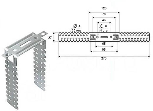 При длине 270 мм и толщине 0,7 мм выдерживает типовые нагрузки каркасов из оцинкованного профиля, а ширина 27 мм обеспечивает уверенный прижим к основанию.